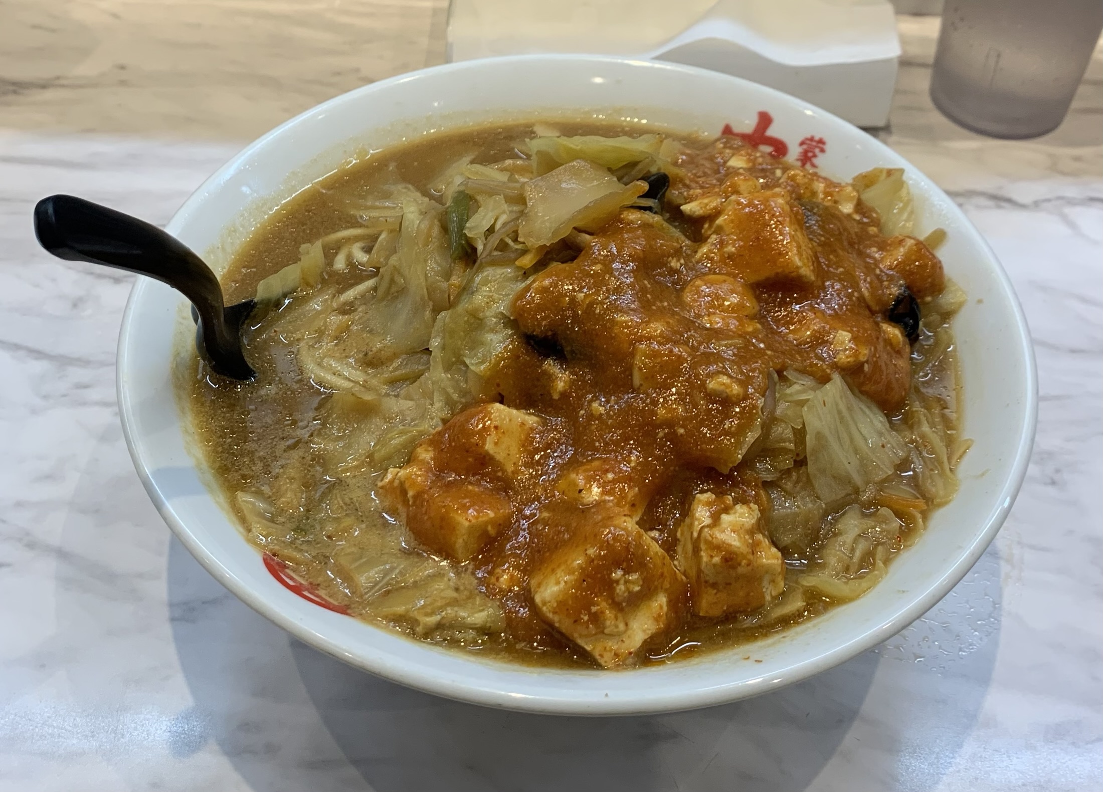 『蒙古タンメン』は『味噌(みそ)タンメン』に秘伝の『辛し麻婆豆腐』をトッピングしたラーメン。辛味だけでなく、肉野菜からのうま味、甘味の感じられるスープに、麻婆の辛さととろみが合わさりコクウマになるのが特長と熊谷市のホームページで掲載されていた通り、肉野菜のうま味が溶け込んだ味噌味のタンメンのスープに麻婆豆腐の辛さが合わさり、うま味の後から辛さが効いてくる癖になる味です。