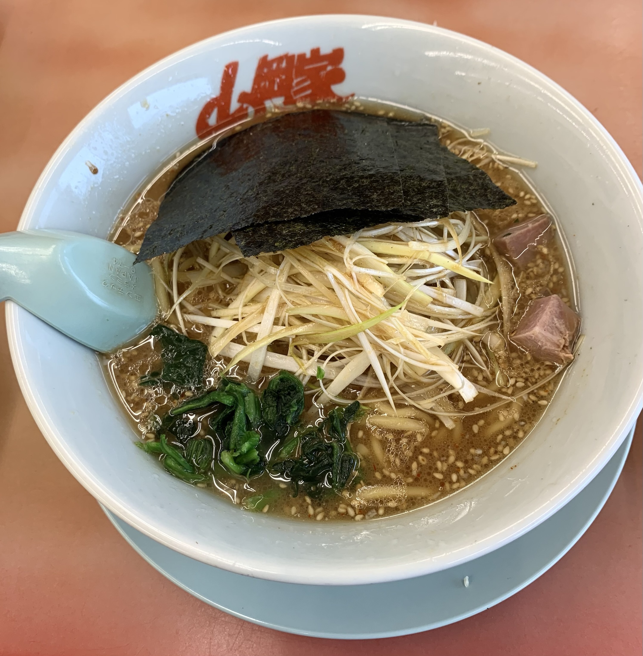 味噌をこいめにしただけあり味噌の味が強めですが、油が適度に入っている事で非常にまろやかになっていて食べやすく、白髪ネギがシャキシャキしており最高に美味しいです。それ以外はホウレンソウ・サイコロチャーシューと、味噌ラーメンにしては具材は少し少なめに感じましたが、パリパリののりが入っており、のりを麺に絡ませながら食べると一味違う味が楽しめます。