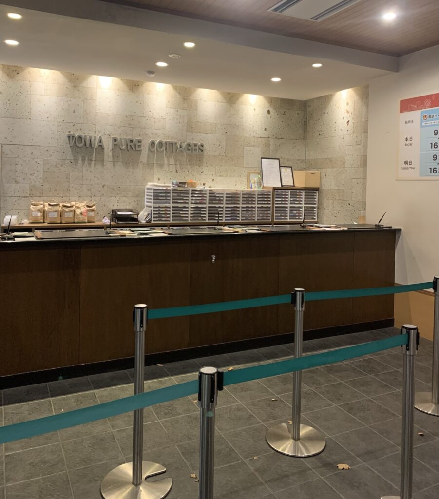 | チェックイン | ・フロントでチェックインの手続きを行います。 宿泊施設及び各種施設に関しての説明を行います。 ・貸別荘に温泉が付いている場合は無料でフロント横にある大浴場を使用する事が可能です。 ただし、貸別荘に温泉が付いていない場合は別途料金がかかりますのでご注意下さい。 |