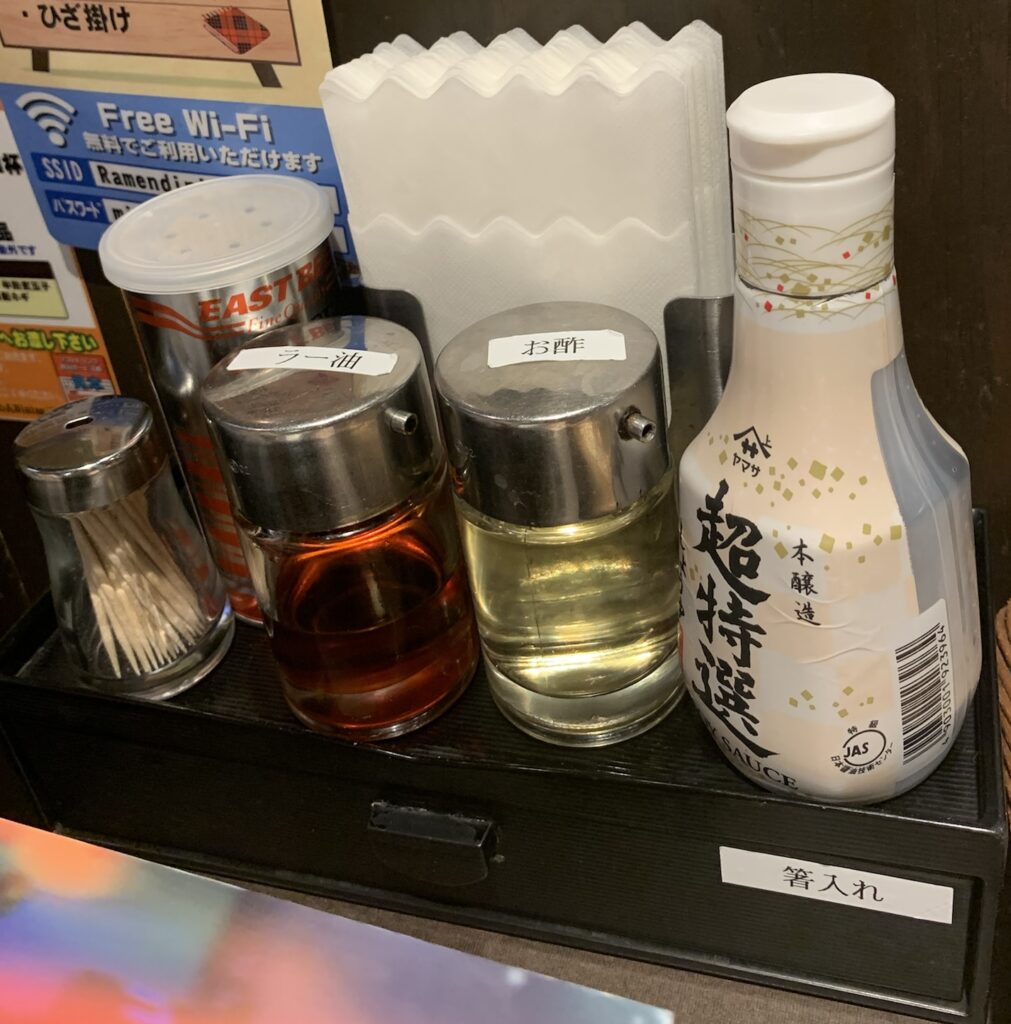 | ・醤油 ・酢 ・ラー油 ・胡椒 |