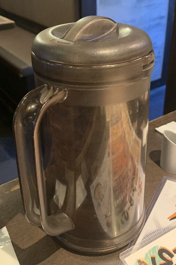 テーブルにピッチャーが置いてあります。