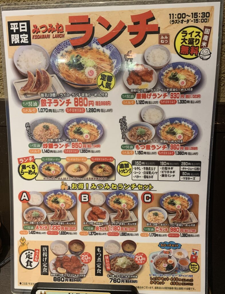 らぁめんDining三峰熊谷店』さんはラーメン店でありながらカフェのような雰囲気を併せ持ち、夜は居酒屋としての顔も見せると言うコンセプトだけあり、店に入った瞬間からラーメン店に来たことを忘れさせる空間になっております。一言で言うとお洒落です。ラーメン店なのに現場仕事の人が似合わないとか面白すぎます(笑)しかしながらランチメニューはボリューム満点で非常に安く、つけ麺などは3玉迄無料と言った、男心も忘れていないのは有難いです。