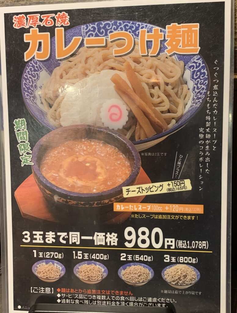 こちらがカレーつけ麺です。 1,078円【税込み】