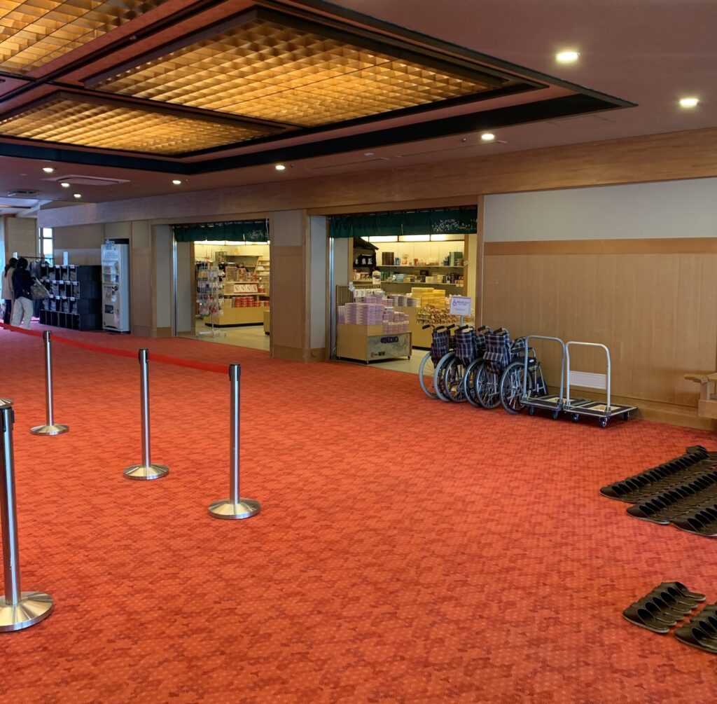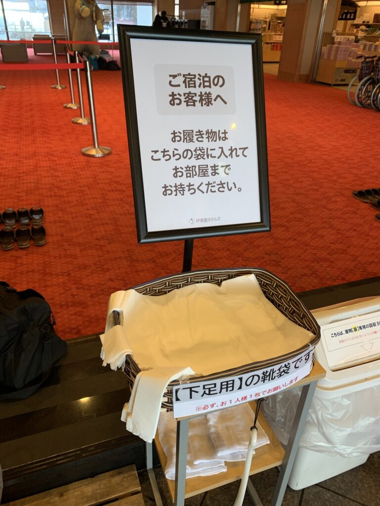 ただし、下足用のビニール袋に履いてきた靴を入れて客室に持って行かなくてはいけないので少し不便を感じるかもしれませんが、室内の床が綺麗なジュータンになっているのでしょうがないですよね!