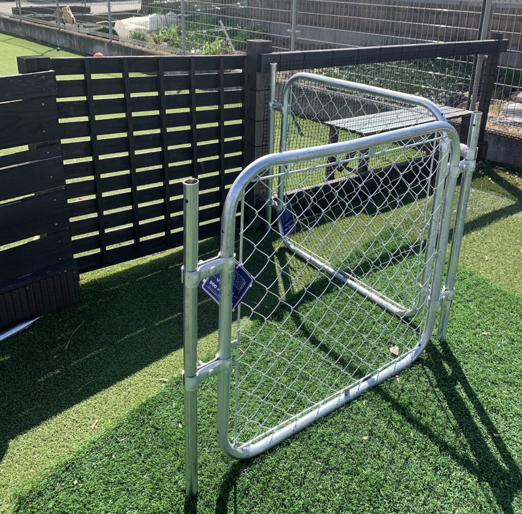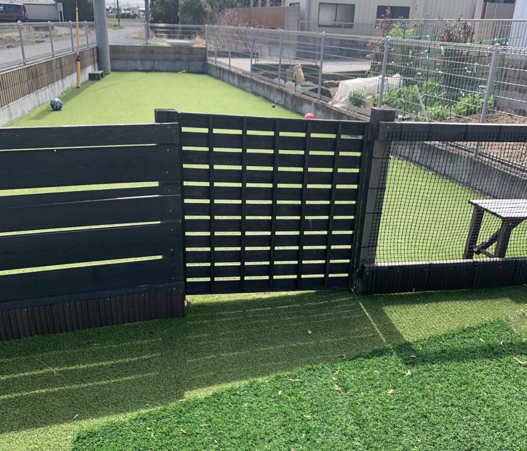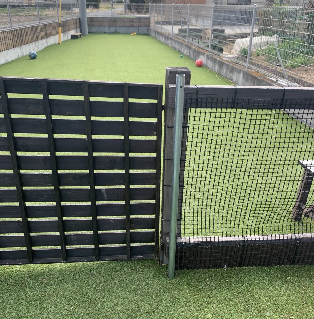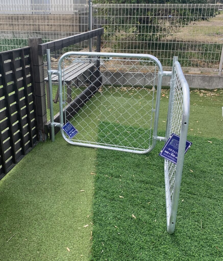 万が一ドックランの出入口の扉の閉め忘れなどをしてしまっても、2重扉(アメリカンフェンス)出入口の扉が閉まっていれば犬の脱走を防ぐことが出来ます。それ以外には、
