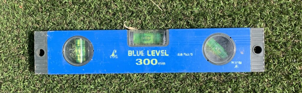 水平器を使い、杭が水平に打ち込まれている事を確認します。
