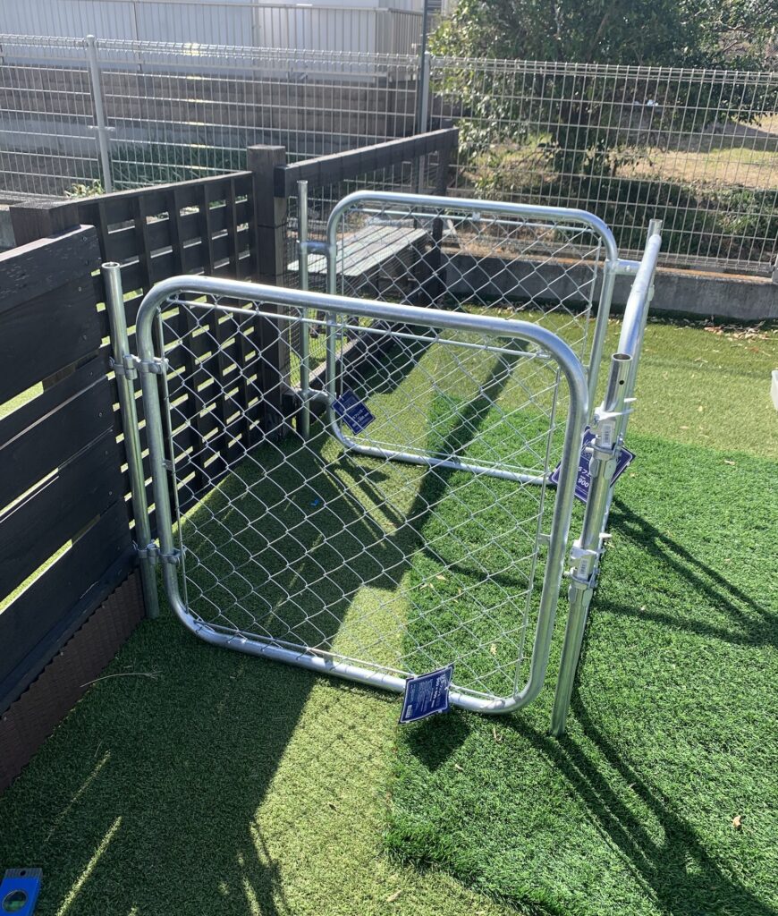 ドックランから犬が脱走!アメリカンフェンスによる出入口2重扉リフォーム手順3点!